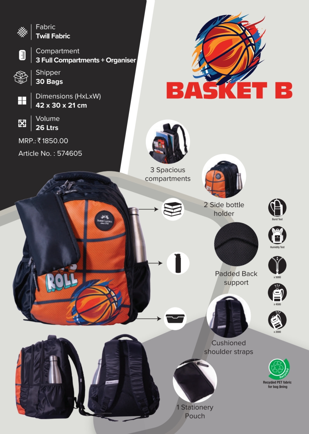 Compartment : 3 Full Compartments + Organiser