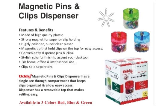 Shop wide range of Pin Clip Magnetic Dispenser / Holder Multicolored, Desk Accessory Stationery, pin dispensers, clip dispensers, magnetic pin holders, clip holders, desk accessory, table accessory, table stationery items
